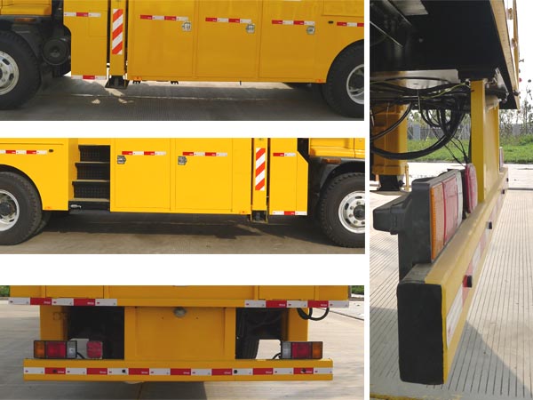 | 前伸:600mm,后伸:160mm。随底盘选装保险杠。该车型装备有支腿,转台,臂架,工作平台等部件的高空作业装置,可将作业人员与工具送到指定高度位置进行作业。ABS及控制器型号为:APG3550500H1,生产厂家为:浙江亚太机电股份有限公司。侧防护为裙板式结构,材料Q235钢,采用焊接连接;后防护材质为Q235钢,断面尺寸150mmX60mm,下缘离地高度500mm。 |