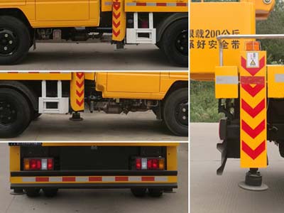 | 后伸:480mm;随底盘选装驾驶室;选装吊钩;侧面防护及后下部防护装置材料材质:Q235,连接方式:焊接加螺栓连接;后下部防护装置断面尺寸(宽赘?:30?00(mm),离地高度:350mm;ABS系统型号:APG3550500A,ABS系统生产厂家:浙江亚太机电股份有限公司;主要专用装置为折叠臂,用于抢修电力、通讯、路灯等高空作业. |