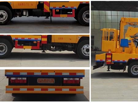 | 1、该车吊臂前伸为1100mm,选装二节工作臂时,作业高度为12米;选装三节工作臂时,作业高度为14米和16米。2、防护材料:Q235B碳钢,连接方式:左右侧面防护采用焊接连接,后下部防护采用螺栓连接,后下部防护断面尺寸(mm):180?0,后下部防护离地高度(mm):370。3、ABS厂家及型号:襄阳东风隆诚机械有限责任公司/ABS/ASR-24V-4S/4M。4、专用装置:工作臂,主要用于高空作业。5、随底盘选装驾驶室。6、仅选用轴距为3308mm底盘改装。 |