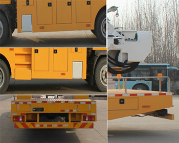 | 随底盘选装驾驶室;侧防护为裙板结构,材质为Q235钢,离地高度为465mm;后防护材质为Q345钢,与副车架螺栓连接,断截面尺寸为150mm?0mm,下缘离地高度490mm。当轴距为3800mm时,整车长度为7770mm,当轴距为4200mm时,整车长度为8170mm。选装侧防护的形式,侧防护材质为Q235钢板,与车架连接方式为螺栓连接。ABS系统型号为XH-KQ4S4M-E01,生产企业为广州市西合汽车电子装备有限公司。选用轮胎是:8.25R16LT 16PR/18PR,8.25R20 10PR/12PR/14PR,9R17.5 14PR/16PR,9R22.5 10PR/12PR/14PR。 |