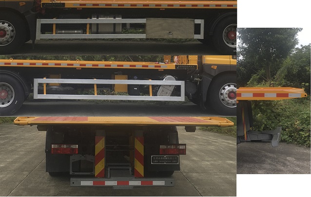 | ABS型号:J ABS,ABS/ASR-24V-4S/4M;ABS生产企业:焦作博瑞克控制技术有限公司,襄阳东风隆诚机械有限责任公司;选装限速装置;限速装置限速(km/h):89;选装描述:随底盘选装驾驶室;选装后部结构,后部尾板收起状态的水平长度为150mm;仅选用5600mm,5300mm,5000mm,4700mm轴距;侧后防护情况:侧防护材质为铝合金,连接方式:螺栓连接;后防护由车身专用装置替代,离地高度480mm;专用功能及装置:该车用途为道路故障车辆、城市违章车辆托运;主要专用装置有平板机构、绞盘、托臂机构及油缸;托举质量(kg):整车整备质量(kg)/托举质量(kg)/驾驶室准乘人数(人)对应关系为:11900/5970/2,11900/5905/3,10800/7070/2,10800/7005/3,9800/8070/2,9800/8005/3;其他说明:该车外形尺寸(mm)长=前悬+轴距+后悬对应关系为:10350=1260+5600+3490,10000=1260+5300+3440,9500=1260+5000+3240,9000=1260+4700+3040; |