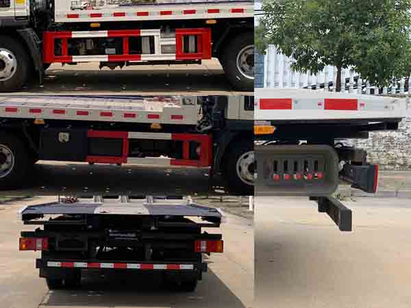| 1.该车主要用于道路清障,主要专用装置为平板、绞盘、钢丝绳、油缸,托举质量为565kg(2人),500kg(3人);2.侧、后防护装置材料均为Q235,侧防护螺栓连接,后防护焊接连接,后防护截面尺寸(mm):100?0,下边缘离地高450mm;3.ABS系统型号/生产企业的关系为XH-KQ4S4M-E01/广州市西合汽车电子装备有限公司, CM4XL-4S/4M/广州瑞立科密汽车电子股份有限公司;4.随底盘选装驾驶室,选装尾板结构样式及上装外观;5.整车长度/轴距对应关系(mm):5995/3280,5515/2800. |
