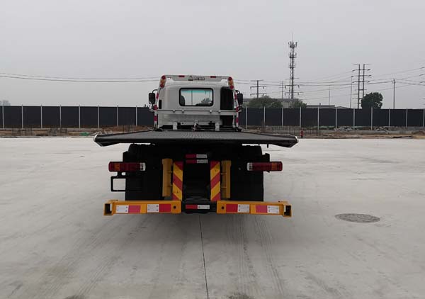 | 1.选装驾驶室,选装托臂架后部颜色,选装无托臂架.2.该车为道路清障专用车辆,专用装置为平板机构、托臂架、取力器、油缸、绞盘等,托举质量为8350kg。3.侧面防护装置与底盘纵梁间采用螺栓连接,材质为Q235;后防装置为专用装置结构替代,截面尺寸为127mm?27mm,离地高度为490mm。4.ABS的型号:ABS-E、ABS/ASR-24V-4S/4M,生产厂家 :威伯科汽车控制系统有限公司、东科克诺尔商用车制动系统(十堰)有限公司;5.外形长度尺寸/轴距/后悬对应关系为9610/5150/3190。6.无托臂架时,安装后防护装置,整备质量为9050kg,平板机构最大装载质量为8820kg,后防护装置与托架尾部主体焊接,材质为Q235B,截面尺寸为140mm?0mm. |
