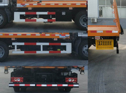 | 该车上装装有牵引绞盘,背载平台,钢丝绳,油缸,用于故障车辆,城市违章车辆托移,托举质量为:500Kg.该车上装选装铝平板结构时外形尺寸不变,其整备质量为:3600kg,托举质量为:700kg.选装后部样式及侧面样式,随底盘选装驾驶室及后部平板样式,侧后防护装置材料:Q235B,连接方式:螺栓连接,后防护断面尺寸(mm):120?5,离地高度410mm.ABS系统控制器型号/生产企业:ABS-E/威伯科汽车控制系统(中国)有限公司,ABS-VI稥/广州瑞立科密汽车电子股份有限公司. |