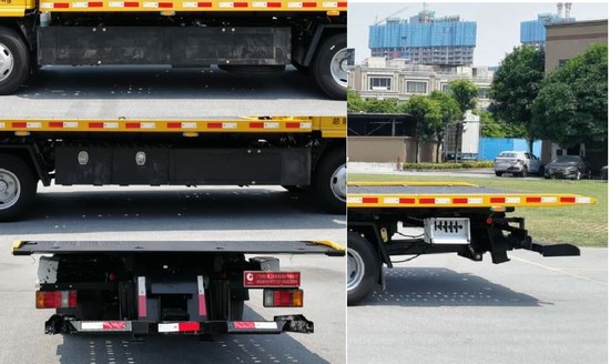 | ABS型号:CM4XL-4S/4M;ABS生产企业:广州瑞立科密汽车电子股份有限公司;发动机净功率值:87kW;选装描述:选装无托套托臂;随底盘选装驾驶室外观;选装ETC车载装置;所用材料材质、连接方式以及后部防护装置的主要尺寸参数(断面尺寸和离地高度):侧防护与底盘纵梁采用螺栓联接,材质为Q235A,后部为专用装置结构替代后防护,下缘离地高度为495mm;专用功能及装置:该车主要用于道路车辆清障,主要专用装置为平板、绞盘、托举装置;托举质量(kg):2650; |