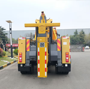| 轴距仅选用6000mm.额定托举质量为3070Kg.ABS系统生产厂家及型号分别为:西安正昌电子股份有限公司(ZQ FB-V ).侧防护为裙边结构,材料Q235A,离地高度为460mm,后防护为拖臂专用装置,材质Q235A,离地高度490mm,连接方式为焊接连接.选装双卷扬,双吊钩上装,选装时整备质量为18100Kg,额定托举质量为2770Kg.整车长9320mm,后悬1795mm.专用装置为吊拖连体清障装置,吊臂可实现吊重作业,拖臂可实现提供起吊、拽拉功能.选装后部托臂臂头样式. |