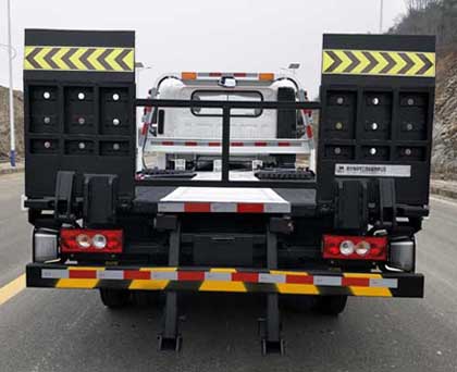 | 该车安装清障装置,用于故障车辆,城市违章车辆托移,主要专用装置为绞盘,钢丝绳,油缸,平板结构.托举质量500kg.防护所用材质为Q235A,螺栓紧固连接于附车架,后部为专用装置,离地高度490mm.尾板收起状态长度:200mm.ABS系统控制器型号/生产企业:ABS-E/威伯科汽车控制系统(中国)有限公司,ABS-VI•E/广州瑞立科密汽车电子股份有限公司.选装后托臂样式,选装上车坡道样式,选装上车坡道装置可收缩,选装全落地样式,选装宽体灯架. |