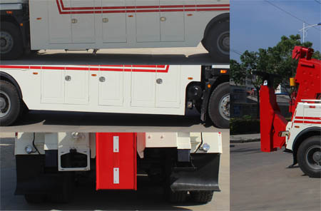 | 该车用途为道路故障车辆、城市违章车辆及抢险救援等;主要装置为托臂、取力器、液压油缸组成.随底盘选装驾驶室.当选装20D上装时,整备质量为18700kg,托举质量6170kg,6105kg与2,3人一一对应;当选装25D上装时,整备质量为20250kg,托举质量4620kg,4555kg与2,3人一一对应;防护材料:Q235B,连接方式:左右侧面防护为裙边式结构,与车身连接为整体;后部专用装置离地高为490mm.ABS系统型号为446 004 6300,生产企业为威伯科汽车控制系统(中国)有限公司. |
