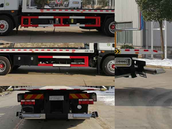 | 1、该车主要用于城市道路清障,主要专用装置为平板。整备质量9000kg,10000kg,11000kg对应托举质量6805kg,5805kg,4805kg。外形长与采用的轴距/后悬对应关系为(mm):9810/5200/3380,10330/5600/3500。2、侧防护采用冷弯型钢/Q235,螺栓连接;后防护由专用装置代替,离地高500mm。3、安装带有卫星定位功能的行驶记录仪。随底盘选装驾驶室,ABS系统控制器型号/厂家:J ABS/焦作博瑞克控制技术有限公司。选装后尾板结构样式,选装后托臂结构样式。 |