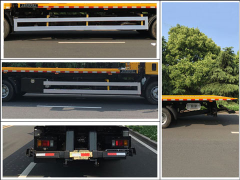 | 托举质量:2805kg;可选装尾板,此时整备质量为7550kg,托举质量为2255kg;ABS及控制器型号为:APG3550500H1,生产厂家为:浙江亚太机电股份有限公司;发动机净功率为140kw。该车用途为道路故障车辆、城市违章车辆托运;主要专用装置为平板装置、绞盘及托臂机构;侧防护材质为铝合金,连接方式:螺栓连接;后防护由车身专用装置替代,离地高度500mm. |