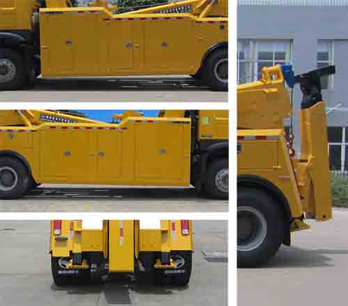 | 装12TJ16D托吊装置时,吊机自重3849kg,整备质量为15370kg,整车长度8900mm,后悬1800mm,托举质量500kg。选装8TJ16D托吊装置时,吊机自重2970kg,整备质量为13970kg,整车长度8730mm,后悬1630mm,托举质量为1900kg。选装两侧压筋工具箱门。选装托臂外观。整车两侧为Q235钢质工具箱裙板防护与车体大梁副车架螺栓连接,后部为专用托举装置替代后防护,下缘离地高度445mm。ABS系统型号:4460046300,生产企业:威伯科汽车控制系统(中国)有限公司 |