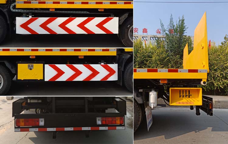 | 该车用于道路清障,专用装置为平板,托举臂;托举质量:500kg;侧防护装置材料为Q235,连接方式为螺栓连接;后下部防护装置由工作装置代替,下边缘离地高度400mm,ABS系统生产企业/型号为:1.广州瑞立科密汽车电子股份有限公司/CM4XL-4S/4M;2.浙江万安科技股份有限公司/VIE ABS-II.选装后部伸缩尾板样式,选装侧面防护装置样式.该车型可选装ETC车载装置. |