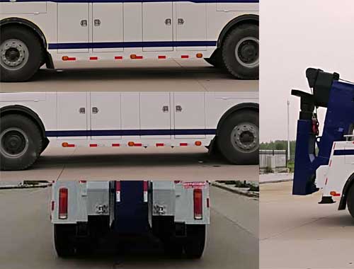 | 随底盘选装驾驶室。驾驶室准乘人数: 2,3人与托举质量(kg)5870,5805一一对应;侧防护为裙边结构;后防护装置由后托臂代替,最下端离地高为420毫米.整车长/轴距对应关系为(mm):10250/1800+3575+1400,10250/1950+3425+1400,11250/1800+4575+1400,11250/1950+4425+1400,9650/1800+2975+1400,10650/1800+3975+1400,11350/2100+4375+1400,11550/2100+4575+1400,10450/1800+3775+1400.ABS系统生产厂家及型号为: 广州市科密汽车制动技术开发有限公司CM6XL-6S/6K(6S/6M)、广州市科密汽车制动技术开发有限公司CM4XL-4S/4K(4S/4M)、西安正昌电子有限责任公司ZQFB-V、浙江万安科技股份有限公司VIE ABS-Ⅱ。该车用途为道路故障车辆、城市违章车辆托运,主要装置为托臂。 |