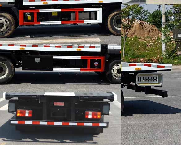 | 选装后部带托板结构,选装后部不带托板结构;随底盘选装驾驶室,当驾驶室准乘人数为3人时,托举质量为500kg,当驾驶室准乘人数为2人时,托举质量为565kg;侧防护材料Q235,焊接连接;后防护材料Q235,焊接连接,后部防护装置截面尺寸120mm?0mm,后部下边缘离地高度:390mm;ABS系统控制器型号/生产企业对应关系为:CM3XL-4S/3M(4SF)/广州瑞立科密汽车电子股份有限公司;XH-KQ4S3M-E01/广州市西合汽车电子装备有限公司;该车主要用于道路清障,专用装置为平板、绞盘、钢丝绳、油缸. |