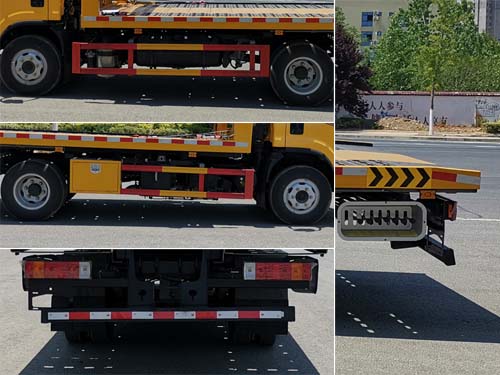 | 托举质量:500kg; 随底盘选装驾驶室;选装带后栏板样式;选装后部不带伸缩板样式;选装后部样式;侧防护材料Q235,螺栓连接;后防护材料Q235,焊接连接,后防护截面高度尺寸100mm,截面宽度尺寸50mm,下边缘离地高度460mm;ABS防抱死制动系统生产厂家/型号:1.广州瑞立科密汽车电子股份有限公司/CM4XL-4S/4M;2.浙江万安科技股份有限公司/VIE ABS-II;该车主要专用装置为平板和液压绞盘,用于道路故障车辆,城市违章车辆及抢险救援等。 |