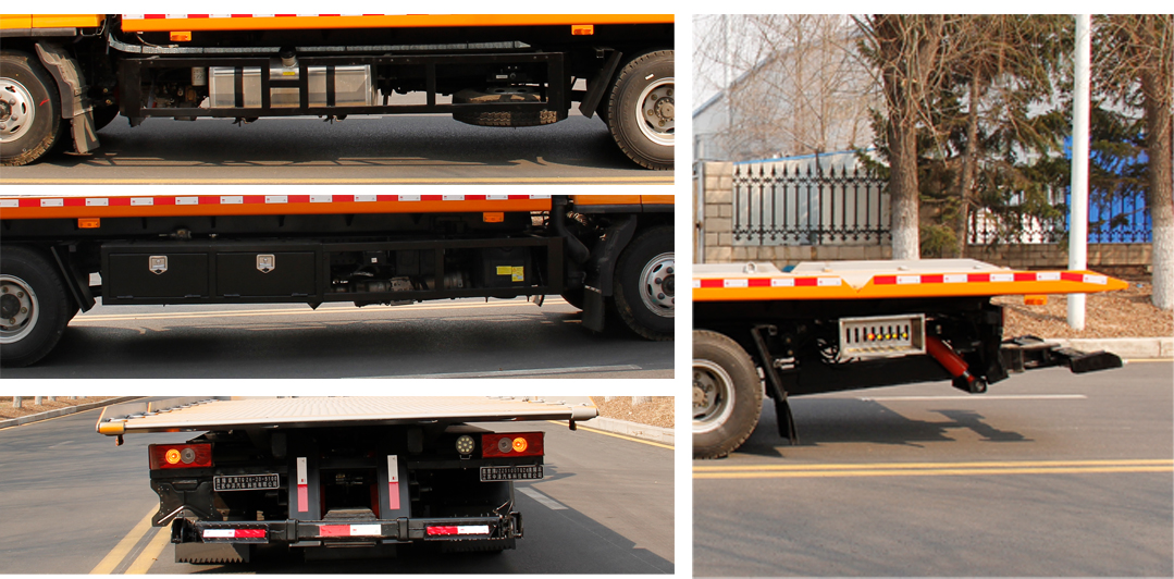 | 1、该车配备事故救援、排障的清障专用装置:主要包含副梁总成、平板总成、绞盘钢丝绳总成、托臂总成及清障专用托具等零部件;平板总成用于背载作业;绞盘钢丝绳总成用于背载、施救过程中拖拽作业,托臂、托具总成用于托牵作业,用于城市道路、郊区公路、高速公路以及机场、桥涵道路之安全清障; 2、托举质量为2300kg;该车后伸量为270mm; 3、侧防护与底盘纵梁间采用螺栓联接,材质为Q235,离地高为486mm;后部专用结构装置与防护装置的安装产生干涉,由专用作业装置替代后防,材质为Q345,采用铰轴与车辆链接,后部离地高度480mm; 4、发动机型号为F3.8NS6B170,净功率为122kW,排量3800ml; 5、ABS系统控制器型号/生产企业:ABS-E/威伯科汽车控制系统(中国)有限公司 6、安装带卫星定位功能的行驶记录仪; 7、选装窄体车厢时外观无变化,此时整车宽度为2400mm; 8、选装拉臂结构; |