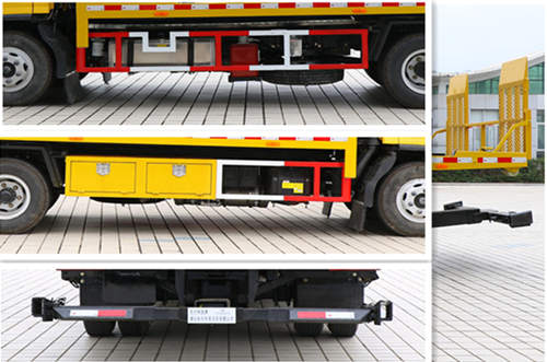 | 该车用途为清除道路故障车辆,城市违章车辆及抢险救援等;主要装置为托臂、取力器、液压油缸;选装龙门架、落地板、普通板;当选装落地板时,整备质量为5740kg,托举质量为2340kg;当选装普通板时,整备质量为5540kg,托举质量为2540kg;侧防护为裙板结构,材料为Q235B,与车架螺栓加焊接连接;后防护由专业装置替代,下边缘离地高470mm;ABS及其控制器型号为:ABS-E(ABS-VI稥)/威伯科汽车控制系统(中国)有限公司(广州瑞立科密汽车电子股份有限公司)。 |