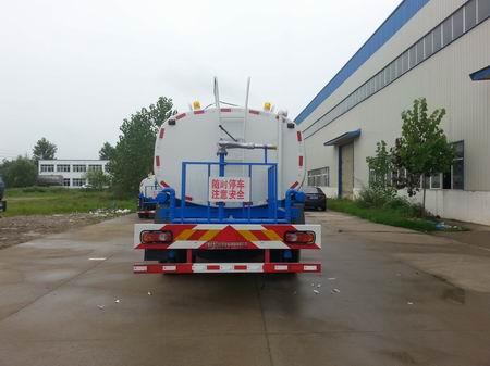 该车主要用于城市洒水、压尘.主要装置为水罐及泵。介质:水,密度:1000千克/立方米,罐体有效容积:10.5立方米;整车长/轴距/罐体尺寸对应关系:7500/3950/4200?200?500(带后部平台),7500/3950/4700?100?400(不带后部平台),7500/3950/3600?370?540(带后喷雾),整车长/轴距/罐体尺寸对应关系:8050/4500/4600?200?400(带后部平台), 8050/4500/5000?100?360(不带后部平台), 8050/4500/4000?350?500(带后喷雾),防护材料:Q235-A,连接方式:左右侧面及后下部防护均采用焊接连接,后部防护断面尺寸(mm):110?0,后部防护离地高度(mm):490.仅采用3950mm,4500mm轴距,ABS型号为:3631010-C2000,生产厂家为:东科克诺尔商用车制动系统(十堰)有限公司,随底盘选装驾驶室,罐体颜色可选,车辆左右两侧均可选装出水口 |