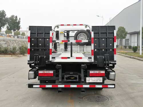 | 该车主要用于道路摩托车清障,主要专用装置为平板、绞盘、钢丝绳、油缸。托举质量为505kg。侧防护采用冷弯型钢/Q235,螺栓连接;后防护采用冷弯型钢/Q235,焊接,截面尺寸100?0mm,离地高450mm。采用轴距与后悬对应关系为(mm):3260/1535,3300/1495,3360/1435。选装后部带伸缩板及无上尾板结构。随底盘选装驾驶室。ABS系统生产厂家:西安正昌电子有限责任公司,型号:ZQFB-V.5。选装龙门架样式。 |