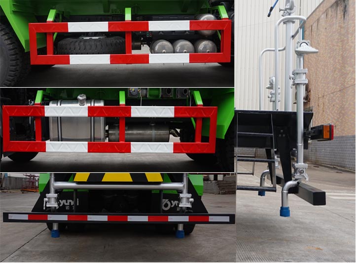 | 1.罐体总容积(立方米):15.1; 2.罐体外形(mm):长(6000)(含封头)长轴(2350)短轴(1380);3,运输介质:水,密度:1吨/立方米; 4:侧后防护装置材料:Q235-A;.连接方式:螺栓连接和焊接;后部防护装置断面尺寸(mm):80?00;.离地高度(mm):450.5:ABS型号/企业: ABS-E 4S/4M/威伯科汽车控制系统有限公司.选装前洒水装置时整车长度为:9770mm,前悬为1712mm.选装弧形挡泥板。 |