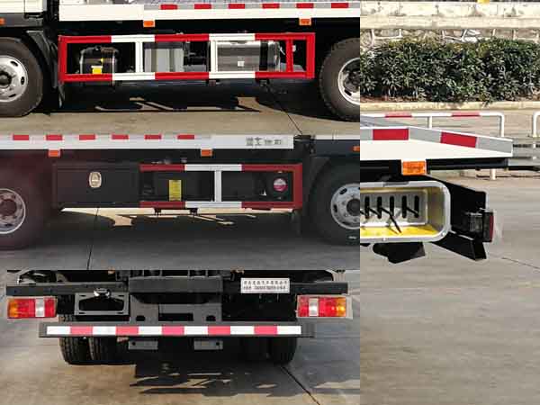 | 1、该车主要用于道路清障,主要专用装置为平板、绞盘、钢丝绳、油缸。托举质量/驾驶室准乘人数对应关系为:500kg/3人,565kg/2人。仅采用3280mm轴距.2、侧、后防护材料均为Q235,侧防护螺栓连接;后防护焊接,截面尺寸(mm):100?0,离地高500mm。选装后部上尾板,选装龙门架样式,选装后伸缩板。3、随底盘选装驾驶室。ABS系统型号为XH-KQ4S4M-E01,生产企业为广州市西合汽车电子装备有限公司;型号为CM4XL-4S/4M,生产企业为广州瑞立科密汽车电子股份有限公司。 |