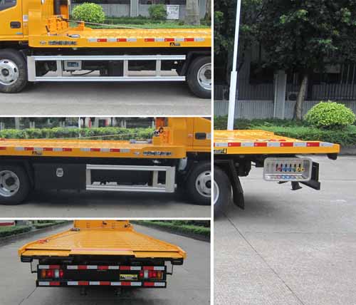 | 该车主要用于道路车辆清障;主要专用装置有平板装置、绞盘、钢丝绳。清障最大装载质量:615kg。选装后折叠竖桥板。侧防护装置材料为铝合金,侧防护采用螺栓紧固于副梁上,后防护装置材料为Q235钢材,后防护焊接于纵梁后结构件上,后防护断面尺寸为100?0mm,后防护下缘离地高度为490mm。ABS系统型号:APG3550500A,ABS系统生产厂家:浙江亚太机电股份有限公司。 |