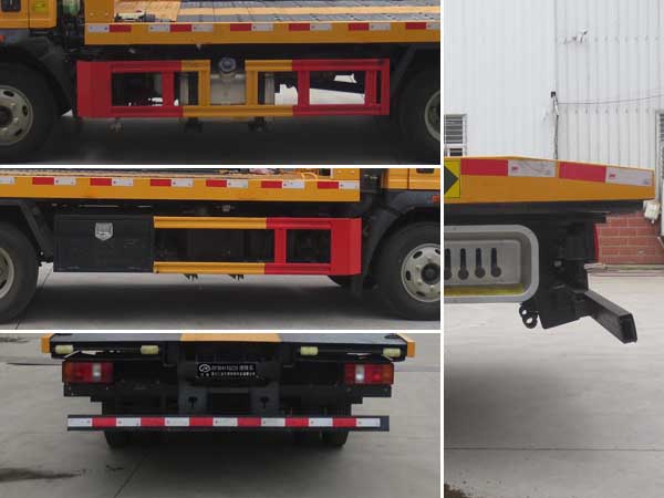 | 托举质量500kg;随底盘选装驾驶室;选装后部结构;侧面防护及后下部防护装置材料材质:Q235,连接方式:焊接;后下部防护装置断面尺寸(宽赘?:50?00(mm),离地高度:480mm;ABS系统控制器型号/生产企业为:CM3XL-4S/3M(4SF)/广州瑞立科密汽车电子股份有限公司;主要专用装置为托举装置,用于道路故障车辆,城市违章车辆清理. |