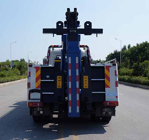| 选装后部外观样式。选装后部盖板样式。随底盘选装驾驶室。当整备质量为14105千克时,托举质量为1500千克;当整备质量为13250千克时,托举质量为2355千克。侧防护为裙边结构,后防护由后托臂代替,最下端离地高为450mm。ABS型号:3631010-C2000,4460046440.生产厂家:东科克诺尔商用车制动系统(十堰)有限公司;威伯科汽车控制系统(中国)有限公司。该车用于道路障碍的清理,主要专用装置为托臂。 |