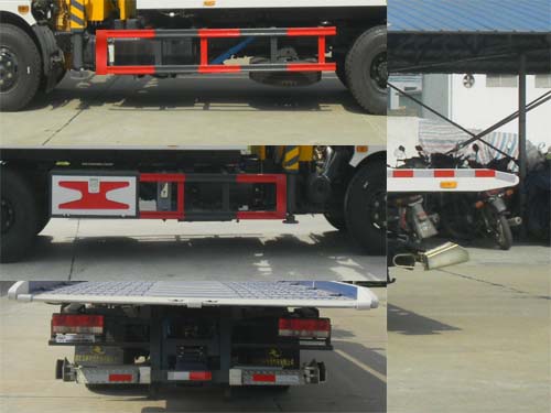 | 装备SQ4S型起重机(自重1105Kg)时,托举质量2100kg,整备质量7105kg;装备SQ3.2S型起重机(自重1050Kg)时,托举质量2700kg,整备质量6505kg,防护装置材料:Q235,连接方式:焊接连接;后防护装置由车身结构替代,离地高度为400mm。该车安装清障装置,用于道路故障车辆,城市违章车辆等工作。ABS型号:ABS/ASR-24V-4S/4M,厂家:襄阳东风隆诚机械有限责任公司。随底盘选装驾驶室。 |