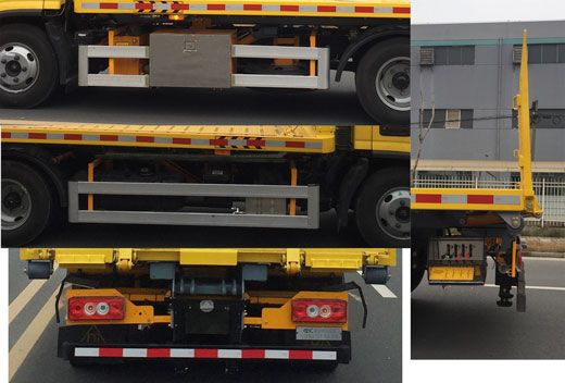 | 托举质量为500kg;该车用途为道路故障车辆、城市违章车辆托运;该车的专用装置有平板装置、绞盘、钢丝绳及油缸;侧防护材质为铝合金,连接方式:螺栓连接;后防护材质为Q235,连接方式:螺栓连接及焊接,后防护断面尺寸(mm):100?0, 离地高度380mm;该车尾板收起状态的水平长度为:150mm,选装尾板样式;随底盘选装驾驶室,ABS系统控制器型号/生产企业:ABS-E/威伯科汽车控制系统(中国)有限公司,ABS-VI稥/广州瑞立科密汽车电子股份有限公司; |