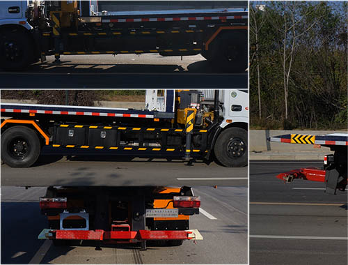 | 整备质量为7280千克时,托举质量为4520千克;整备质量为7450千克时,托举质量为4350千克。随底盘选装驾驶室,选装后部托板样式,选装伸缩板样式。吊机型号/自重/最大起升载荷分别为(kg):SQS125/2260/4400;SQZ132/2260/4400;SQS100/1396/4000;SQZ105/1396/4000。侧防护采用Q345,螺栓连接,后防护由后托臂代替,离地高为400毫米。ABS型号/厂家:ABS型号:ABS/ASR-24V-4S/4M,厂家:襄阳东风隆诚机械有限责任公司。该车主要装置为托臂和吊机,用于清除道路障碍。 |