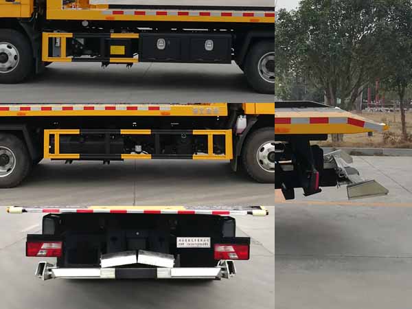 | 1、该车主要用于道路车辆清障,主要专用装置为托臂、平板、绞盘、钢丝绳、油缸。整备质量与托举质量对应关系(kg):5150/2865,5450/2565。选装尾部站板;选装龙门架样式。2、侧防护材料为Q235,螺栓连接;后防护由专用装置代替,下边缘离地高500mm。3、随底盘选装驾驶室前脸。ABS系统型号: VIE ABS-II,ABS系统生产厂家: 浙江万安科技股份有限公司。 |