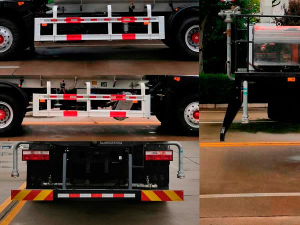 1、仅采用4500mm轴距,后伸为234mm或134mm;2、防护装置所用材料材质为:Q235,侧、后下部防护装置连接方式均为螺栓连接,后下部防护装置的断面尺寸为(mm):140?0,最大离地高度为470mm;3、随底盘,ABS系统生产厂家,型号:焦作博瑞克控制技术有限公司,J ABS;4、随底盘,选装限速装置,限速89km/h;5、选装后部新样式箭头灯;6、选装不安装后部箭头灯;7、选装后防上部喷洒结构;8、选装前对角冲结构;9、选装中部对角冲结构;10、选装后喷洒布置;11、选装后部管路布置结构;12、选装侧面防护装置结构,材料材质为铝合金,连接方式为螺栓连接;13、该车专用装置为抑尘雾炮,主要用途为城市除霾,公路降尘等. |