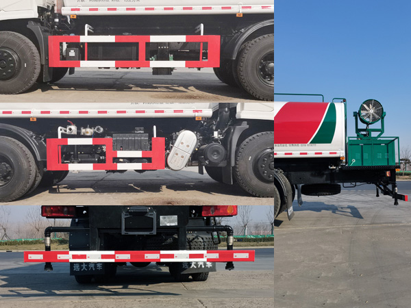 | 随底盘选装驾驶室.该车仅采用轴距4350+1350(mm)的底盘.选装雾炮结构,带雾炮结构时整备质量11140kg,载质量13665kg.不带雾炮结构时整备质量10770kg,载质量14035kg.罐体有效容积:15立方米,罐体外形尺寸(长壮ぶ嶙短轴)(mm):6600?300?400,运输介质:丙酮水溶液,密度950千克/立方米;侧面防护装置的材料为Q235A,连接方式为螺栓连接;后部防护装置的材料为Q235A,连接方式为螺栓+焊接,后部防护装置的断面尺寸(宽赘?mm:60?20,离地高500mm.ABS型号/生产厂家:3631010-C2000/东科克诺尔商用车制动系统(十堰)有限公司.该车专用装置为水罐和喷洒装置,用于绿化喷洒作业. |