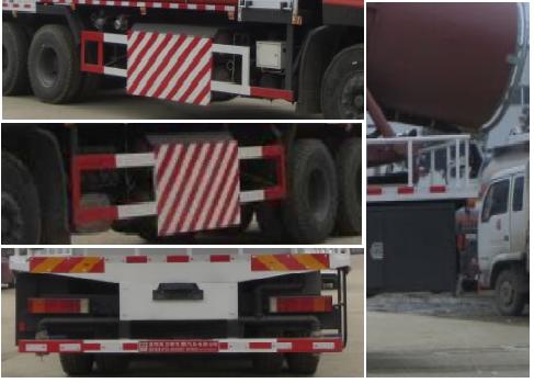 随底盘选装驾驶室.选装外观样式.侧,后防护装置材料材质:Q235B,侧,后防护均用螺栓连接,后部防护装置断面尺寸(宽赘?60?00(mm),后部防护离地高度:540mm.后伸量900mm.装备ABS,ABS的型号为ABS-E 4S/4M,生产厂家为威伯科汽车控制系统(中国)有限公司.除尘装置采用广东风华环保设备股份有限公司所研发的实用新型专利"车载移动式环保除尘喷雾设备",专利号:ZL201120458145.8;选装湖南九九矿安装备有限公司所研发的高效节能专利"高效节能风送式喷雾除尘机",专利号:ZL201420094123.1. |
