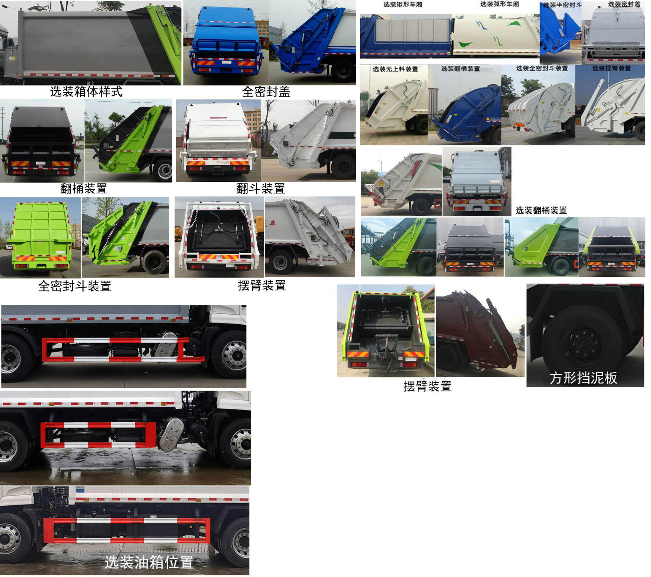 | 1,该车主要用于垃圾的收集与清运;2,仅选4500,4700(mm)轴距;整车长度/前悬/轴距/后悬/后伸(mm)的对应关系为:9125(9155)/1400(1430)/4500/2705/520,9325(9355)/1400(1430)/4700/2705/520;3.侧防护材质:铝合金,连接方式:螺栓连接;后防护为专用装置,离地面高度490mm;4. 随底盘选装驾驶室,驾驶室侧窗装饰板,选装后背式排气管,选装驾驶室轮罩,选装后组合灯,选装无车门裙板,选装前视镜;选装箱体样式,选装矩形或弧形箱体,选装全密封盖装置、半密封装置、翻桶装置、摆臂装置,选装方形挡泥板,选装油箱位置;5.安装带有卫星定位功能的行驶记录仪;6.ABS型号/生产厂家:3631010-C2000/东科克诺尔商用车制动系统(十堰)有限公司,ABS 8/东科克诺尔商用车制动系统(十堰)有限公司, 4460046450/威伯科汽车控制系统(中国)有限公司;7.发动机D4.5NS6B190;D6.7NS6B230;DDi50E190-60;B6.2NS6B210;B6.2NS6B230;DDi50E220-60对应油耗值分别为24.4L/100km;23.7L/100km;23.9L/100km;23.8L/100km;23.8L/100km;25.2L/100km.8,该车型可选装ETC车载装置. |