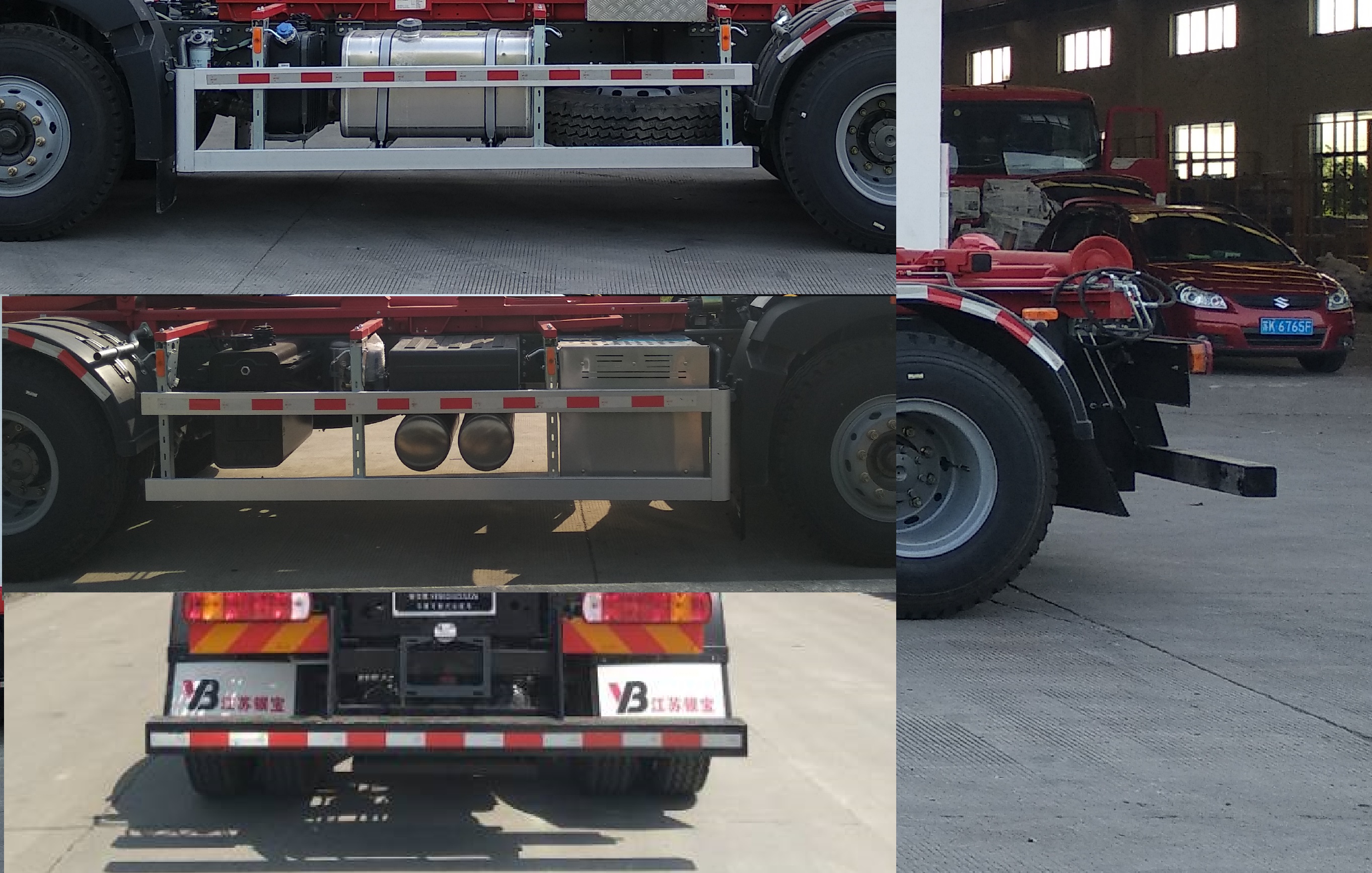 | 1.ABS系统控制器生产企业/型号为威伯科(上海)管理有限公司/4460046300;2.侧面防护装置的横杆材料为铝合金,螺栓连接,离地高度为450mm;后下部防护装置的横梁材料为Q235A,螺栓连接,断面尺寸为120mm?20mm,离地高度为470mm;3.可选装铝合金挡泥罩,外形尺寸无变化,整备质量变化小于3%;4.可选装拉臂上装系统;5.可选装液压油箱后置形式;6.该车可选用的发动机型号和对应的油耗值分别为:MC07.27-60/32.1(L/100km);MC07.31-60/32.1(L/100km);MC07.34-60/32.1(L/100km);MC09.35-60/32.0(L/100km);MC09.35B-60/32.0(L/100km);MC09.38-60/32.0(L/100km);WP8.350E61/32.0(L/100km);MC11.40-60/32.3(L/100km);MC07H.29-60/32.2(L/100km);MC07H.33-60/32.2(L/100km);MC07H.35-60/32.2(L/100km);WP9H350E62/32.2(L/100km);WP10H400E62/32.2(L/100km);7.轴距为4300mm+1350mm时,对应整车长度为8450mm,后悬1370mm;轴距为4300mm+1350mm时,对应整车长度为8195mm,后悬1115mm;轴距为3800mm+1350mm时,对应整车长度为7950mm,后悬1370mm;轴距为3200mm+1350mm时,整车长度为7095mm,后悬1115mm;8.该车安装具有卫星定位功能的行驶记录仪;9.随底盘选装驾驶室外观,选装限速装置,最高车速(km/h)为80或89;10.该车通过拉臂装置及液压系统,实现对垃圾的装载及卸料的作业功能. |