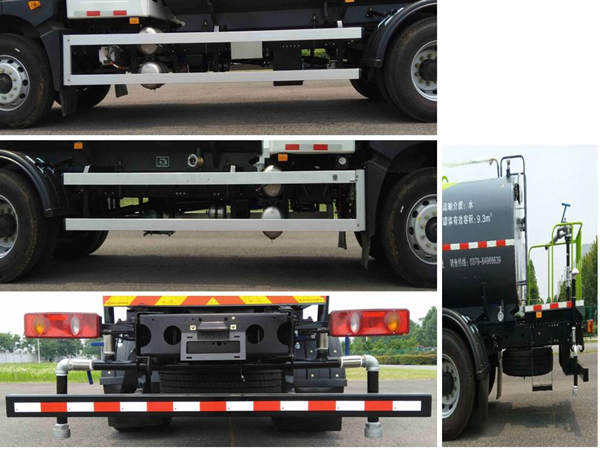 该车选用底盘5000mm轴距,主要专用装置为罐体、水路系统,主要用于喷洒路面,起除尘和降温作用.罐体有效容积:9.3立方米,介质:水,密度:1000千克/立方米.罐体外形尺寸(长卓碜高)(mm):4500?250?280.洒水是基本型.洒水时,整车外形长8760mm,前悬/后悬(mm)为1260/2500.可选装前部水炮装置,洒水并选装前部水炮时,前伸为600mm,整车外形长9360mm.前悬/后悬(mm)为1260/2500.侧面防护装置采用铝合金型材,连接方式:螺栓连接.后下部防护装置材料:Q235A,连接方式:螺栓连接,断面尺寸(mm):120?0,离地高度(mm):490.安装具有卫星定位功能的行驶记录仪;电池种类/生产企业:磷酸铁锂电池/宁德时代新能源科技股份有限公司;驱动电机额定功率/峰值功率:80kw/160kw;ABS型号/生产企业:CM4XL-4S/4M/广州瑞立科密汽车电子股份有限公司.选装后部左右鸭嘴侧喷装置.该车型可选装ETC车载装置. |