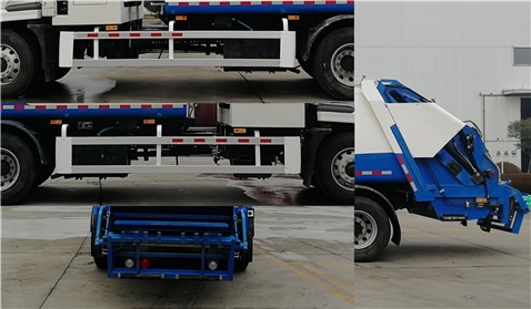 1.该车仅选用底盘轴距5000mm,该车具有三种配置:A无装料机构,B后提桶装料机构,C后簸箕装料机构;2.配置A时,车辆长8855mm,整备质量10975kg,额定载质量6830kg,离去角18?配置B时,车辆长9280mm,具有后伸425mm,整备质量11100kg,额定载质量6705kg,离去角12?配置C时,车辆长9135mm,具有后伸280mm,整备质量11475kg,额定载质量6330kg,离去角18?3.该车技术阶段为"发展期",可在全国销售.电池种类/型号/生产企业: 磷酸铁锂电池/MFH3L8/宁德时代新能源科技股份有限公司;4.ABS型号/生产企业:J ABS/焦作博瑞克控制技术有限公司;该车安装具有卫星定位功能的行驶记录仪;5.该车可随底盘选装限速装置,限速:89km/h;6.侧防材料铝合金,螺栓连接.后防护由车辆后部结构代替,离地高430mm.该车装备有垃圾箱体,液压装置及垃圾装填器,用于将垃圾自行压实装入,转运和卸料功能. |