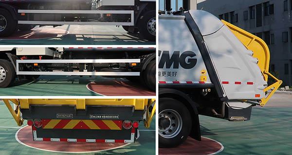 该车主要专用装置为垃圾压缩装置,选装挂桶翻转桶装置,其外形尺寸长为10065mm后伸770mm.选装铲斗翻转装置时,其外形尺寸长为9600mm,后伸305mm.选装摆臂挂桶装置,其外形尺寸长9795mm,后伸500mm.侧面防护装置材质为铝合金,连接方式为螺栓连接;车身固定装置作后防护用,离地高度为450mm;随底盘选装M30B面罩,选装保险杠,选装翼子板,选装前面板亮条,选装A柱贴膜,选装遮阳罩,选装卧铺侧开窗,选装导风板,选装绿玻璃;电池种类/生产企业:磷酸铁锂电池/宁德时代新能源科技股份有限公司.电机种类/电机型号/电机生产企业/电机控制器型号/电机控制器生产企业/电机额定功率/电机峰值功率:永磁同步电机/TZ370XS-LKM1101/苏州绿控传动科技有限公司/KTZ54X45S-LKC1101/苏州绿控传动科技有限公司/80kw/160kw.ABS型号/企业:ABS-E 4S/4M/威伯科汽车控制系统(中国)有限公司.安装具有卫星定位功能的行驶记录仪. |