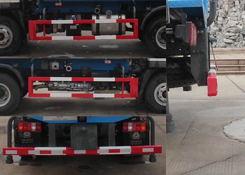 运输介质为:水,介质密度:1000千克/立方米。罐体有效容积4.25立方米,罐体外形尺寸(长壮ぶ嶙短轴)(mm): 3400?660?090。轴距(mm)为3280对应后悬1535mm;轴距(mm)为3360对应后悬1455mm。侧面防护装置和后下部防护装置的材质为Q235,连接方式均为螺栓连接。后下部防护装置的截面尺寸为(宽赘?:50mm?00mm,离地高度为:450mm。专用装置为水泵、水罐和喷枪,主要用于喷洒路面,起除尘和降温作用。ABS系统型号为XH-KQ4S4M-E01,生产企业为广州市西合汽车电子装备有限公司;型号为CM4XL-4S/4M,生产企业为广州瑞立科密汽车电子股份有限公司;型号为VIE ABS-Ⅱ,生产企业为浙江万安科技股份有限公司。随底盘选装驾驶室。选装侧面储气筒、管路及控制盒位置,选装三弯喷枪,选装后部箭头灯,选装后部喷枪结构。