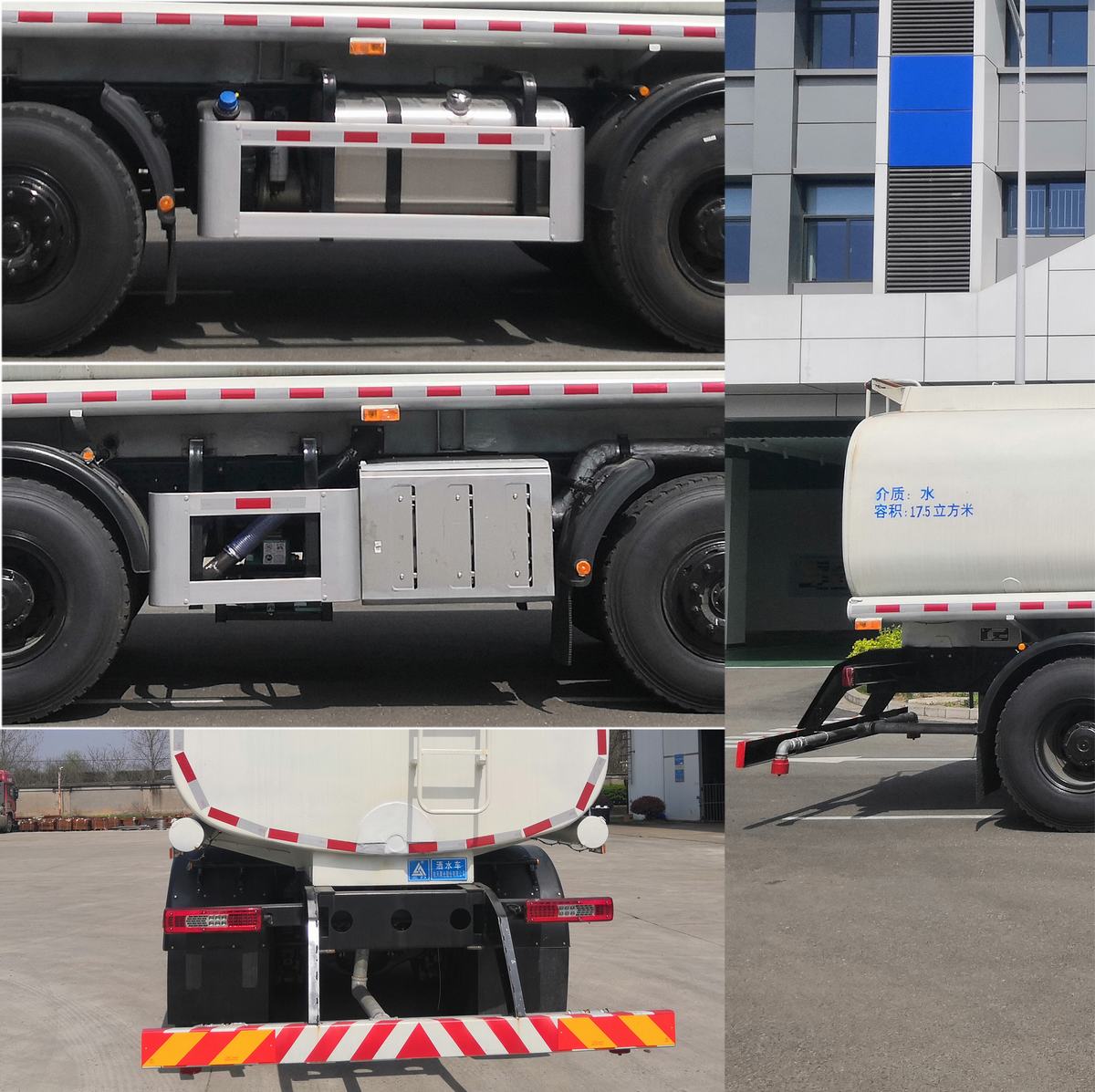 | 1.该车罐体有效容积:17.5立方米,罐体外形尺寸(mm)(长轴锥讨嶙直线段):2304?510?600(直线段),罐体总长6670mm;装运介质:水;密度:1000kg/m3;2.该车有四种选装装置:后上喷雾,箭头灯,小卷盘,后平台;选装一种挡泥板.3.该车安装ABS,ABS系统型号/生产厂家:CM4XL-4S/4M/广州瑞立科密汽车电子股份有限公司,ABS-E/威伯科汽车控制系统(中国)有限公司;该车仅选用WP10H350E62、WP10H375E62、WP12.430E62、WP12.460E62款发动机;4.侧防护材料铝合金,连接方式:螺栓连接,后防材料:Q235-B,连接方式:螺栓连接,后防截面尺寸:160?0(mm),离地高度:480mm.该车配置水罐,水路喷洒水装置和控制系统,主要用于路面洒水降尘作业. |