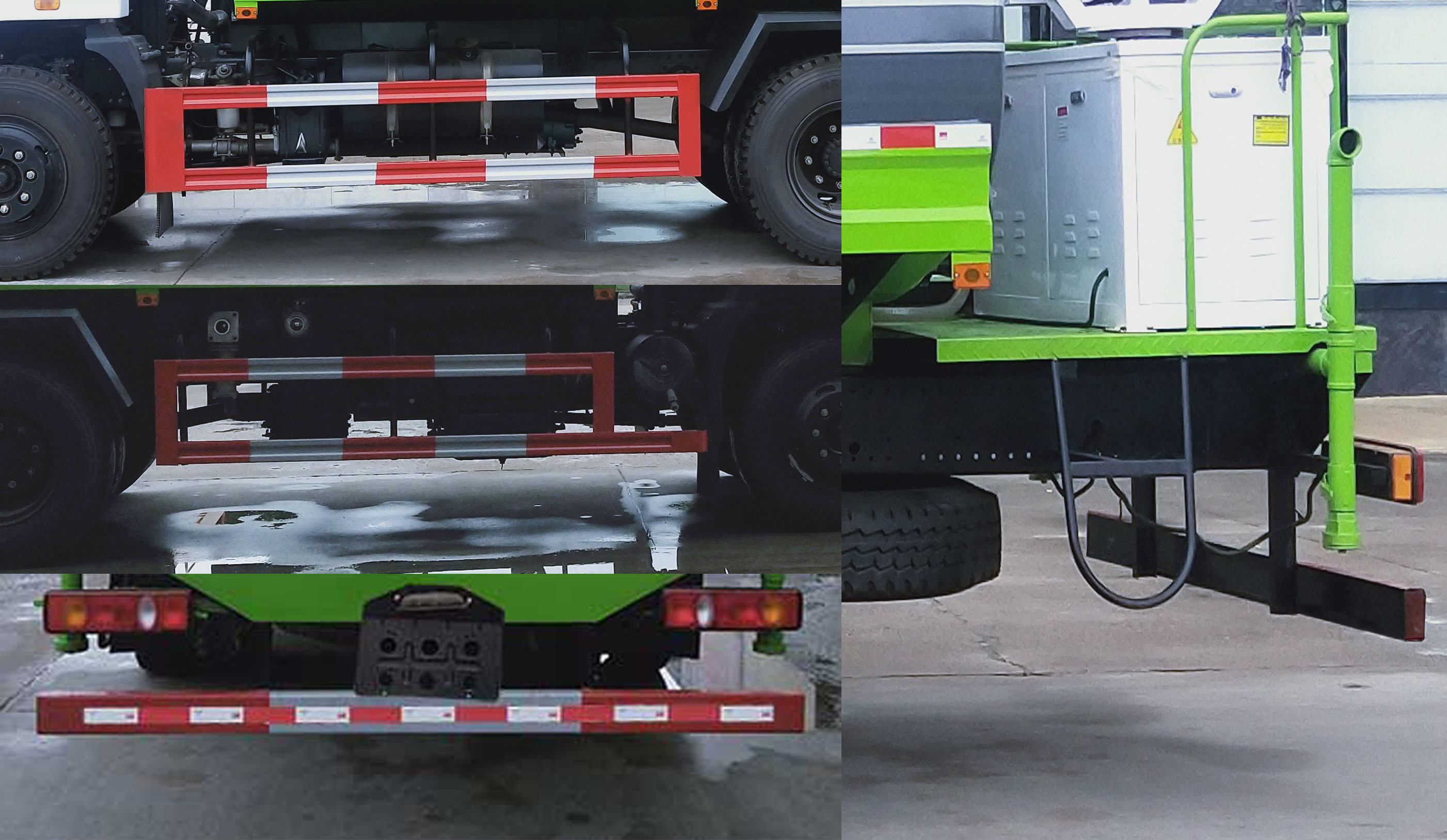 1.该车主要专用装置为罐体,喷雾机,主要用于街道、广场、小区等喷雾消毒作业及防疫预防;2.随底盘选装驾驶室;3.侧、后防护装置材料材质:Q235碳钢,侧、后防护均采用焊接连接,后防护装置断面尺寸为(mm):50?20,后部防护离地高度:490mm;4.ABS型号/厂家:ABS/ASR-24V-4S/4M/襄阳东风隆诚机械有限责任公司. 车前无选装时,前伸0mm,整车长7900mm;装配前自动水炮时,前伸600mm,整车长8500m;仅选用3950mm轴距. |