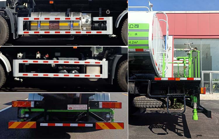 | ABS型号:ABS-E 4S/4M或3631010-C2000;ABS生产企业:威伯科汽车控制系统(中国)有限公司或东科克诺尔商用车制动系统(十堰)有限公司;选装部件名称及其相关描述:选装前置自动水炮时,前伸610mm,整车长度10230mm;选装前置鸭嘴;所用材料材质、连接方式以及后部防护装置的主要尺寸参数(断面尺寸和离地高度):侧防护装置同车架螺栓连接,材料为铝合金+Q235;后防护装置同车架螺栓连接+焊接连接,材料Q235,截面尺寸为120mm?0mm,离地高度495mm;罐体有效容积(立方米)、罐体外形尺寸(mm):罐体有效容积为14.2立方米,罐体外形尺寸:(长度壮ぶ嶙短轴)5900mm?340mm?400mm;专用功能及装置描述:专用装置:水泵,该车用途:路面洒水;其他说明:该车安装有卫星定位功能的行驶记录仪,该车可选装ETC车载装置;该车仅选4350+1350mm轴距; |