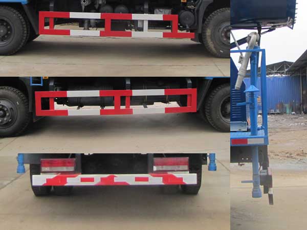 | 随底盘选装驾驶室前脸及保险杠.选装车辆外形颜色.侧后防护采用Q235材质焊接连接,后部防护断面尺寸(mm):50?20,后部防护离地高度(mm):430.ABS型号/生产厂家:ABS-E 4S/4M/威伯科汽车控制系统(中国)有限公司.除尘装置可选用湖南九九矿安装备有限公司所研发的实用新型专利"高效节能风送式喷雾除尘机",专利号:ZL201420094123.1. |