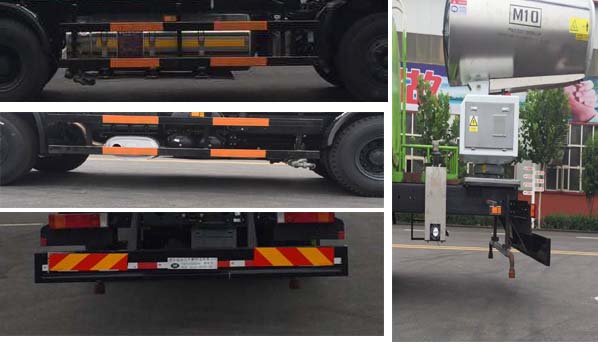 ABS 的型号为ABS-E4S/4M,生产厂家为威伯科汽车控制系统(中国)有限公司,罐体外形(长X大径X小径mm):4500X2500X1500,罐体有效容积:11.3立方米;侧防护装置和后防护装置的材料材质为Q235,连接方式分别为螺栓连接,后防护装置的断面尺寸为200?00毫米,离地高度为410毫米.该车长为11570时对应后悬为3460,长为11910时后悬为3800该车仅选用轮胎11.00-20 18PR,11.00R20 18PR,295/80R22.5 18PR |