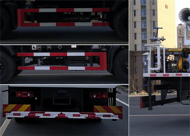 该车主要用于除霾和降尘,主要专用装置为水箱及喷雾装置总成,罐体有效容积9.35立方米,介质:水,密度:1000千克/立方米;罐体外形尺寸(长壮ぶ嶙短轴)(mm): 4000?300?500.仅选轴距3950(mm),随底盘选装驾驶室前脸局部造型变化,选装排气管样式,选装遮阳板,选装驾驶室侧窗装饰板.选装压尘装置,选装浇花卷盘,选装前置鸭嘴,选装后作业指示灯,选装尾部对冲;侧,后防护材质:Q235,连接方式:螺栓连接;后防护断面尺寸/离地高:120?0/400(mm),选装后防护断面尺寸/离地高:120?0/400(mm).装有ABS,ABS型号:3631010-C2000,VIE ABS-Ⅱ;ABS生产企业:东科克诺尔商用车制动系统(十堰)有限公司,浙江万安科技股份有限公司.该车安装具有卫星定位功能的行驶记录仪;该车型可选装ETC车载装置. |
