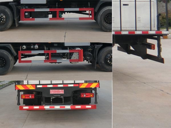 | 随底盘选装高度不同的驾驶室;选装前雾灯;选装驾驶室顶部装饰灯;选装驾驶室前面罩;选装前保险杠及前部灯具,选装后视镜;选装后部灯具;选装驾驶室前脸扰流罩;驾驶室卧铺侧窗选装装饰板,选装后背式排气管.侧防护采用冷弯型钢/Q235,螺栓连接。后防护采用冷弯型钢/Q235,焊接连接。后防护截面高度尺寸120mm,截面宽度尺寸50mm,下边缘离地高度500mm。ABS型号/生产厂家:3631010-C2000/东科克诺尔商用车制动系统(十堰)有限公司,ABS 8/东科克诺尔商用车制动系统(十堰)有限公司, 4460046450/威伯科汽车控制系统(中国)有限公司。该车用途为抑尘降霾,主要装置为水罐及喷雾装置。采用4500mm,4700mm轴距底盘,车辆长与轴距及后悬一一对应。额定载质量和整备质量及驾驶室准乘人数一一对应。随底盘选装驾驶室。ABS型号及厂家为:J ABS/焦作博瑞克控制技术有限公司,罐体有效容积:9.39立方米,罐体尺寸:3200/3400?450?650. |