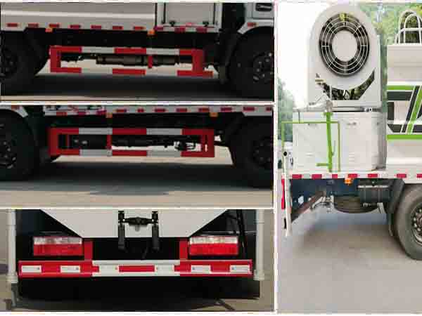 | 专用装置为抑尘雾炮,用于城市抑尘.整车长/轴距对应关系为(mm):7000/3600;7200/3800,7350/3950,7450/4050,7500/4100,7800/4400.防护材料:Q235A碳钢,连接方式:左右侧面及后下部防护均采用焊接连接,后部防护断面尺寸(mm):120?0,后部防护离地高度(mm):400.ABS型号/厂家:ABS型号:ABS/ASR-24V-4S/4M,厂家:襄阳东风隆诚机械有限责任公司.当整备质量为6688kg时,选用轴距为(mm):3600/3800/3950;当整备质量为7288kg时,选用轴距为(mm):4050/4100/4400.随底盘选装驾驶室.该车罐体长卓碜高为(mm):2770?000?560,有效容积:5.65立方米. |