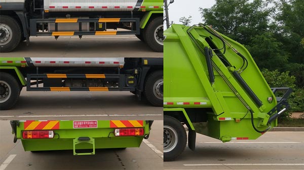 随底盘选装新风格格栅.选装前部logo.选装新前格栅及新logo;ABS型号为CM4XL-4S/4M,生产厂家为广州瑞立科密汽车电子股份有限公司;安装有具有卫星定位功能的行驶记录仪;该车可选装直接供电式ETC车载装置;后部选装全密封翻斗装置和半密封翻桶装置;发动机WP4.6NQ220E61对应油耗值为26.9L/100km;侧后防护情况:防护材料:Q235碳钢,连接方式:左右侧面防护采用螺栓连接在车架副梁上,后部防护由专用装置代替,最小离地高度为490mm;专用功能及装置:专用装置:液压机构和填装器,主要用于城镇环卫垃圾的运输;其他说明:整车长/轴距/后伸对应关系为(mm):9050/4800/400,8850/4800/200,8650/4800/0,8750/4500/400,8550/4500/200;8350/4500/0. |